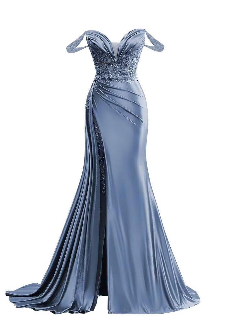 Işıltılı taş işlemeleri ve zarif kol detayıyla dikkat çeken bu uzun buz mavisi abiye, yırtmaçlı tasarımıyla modern ve çekici bir duruş sunar.